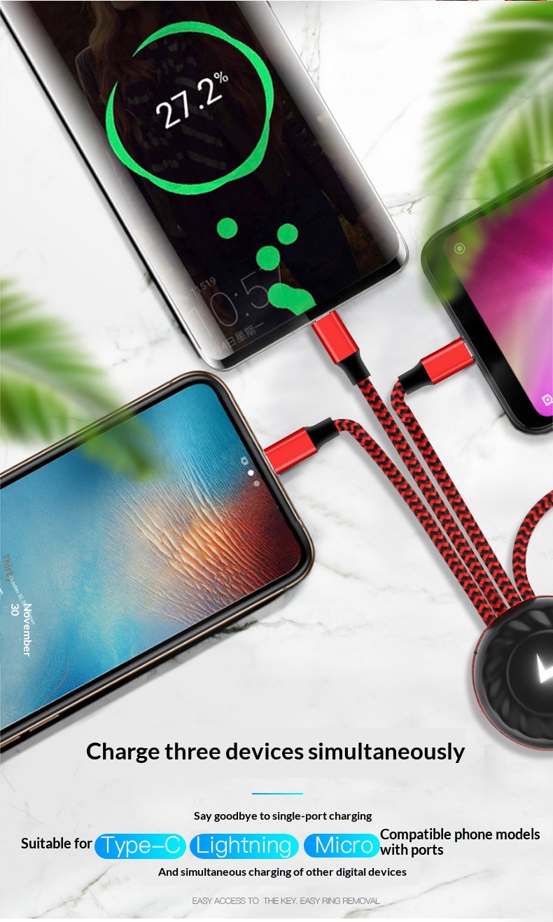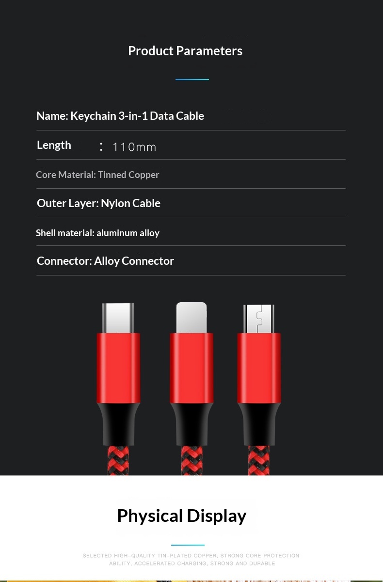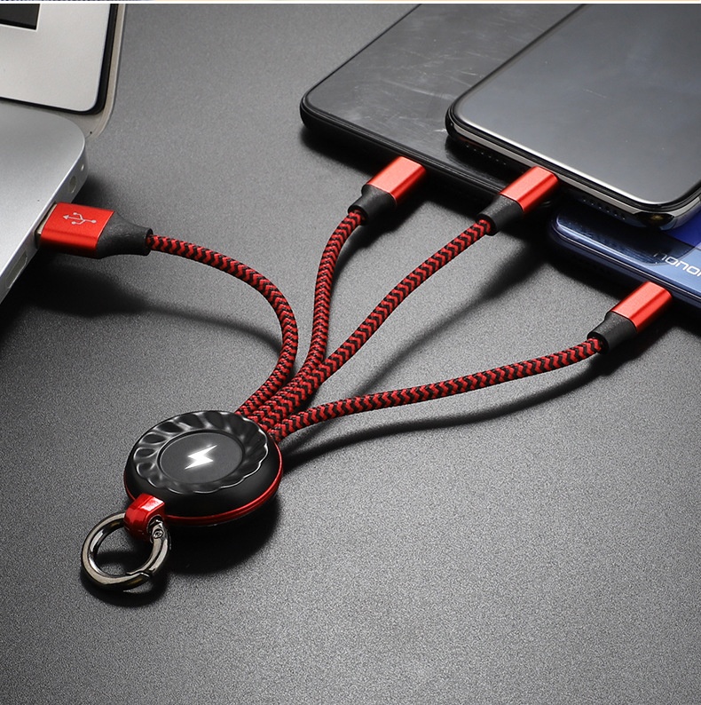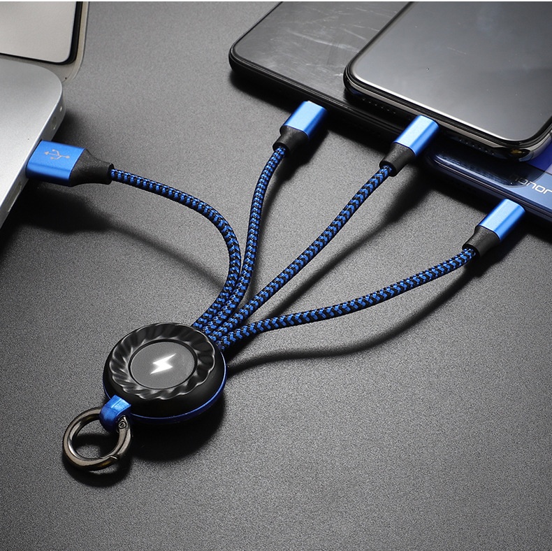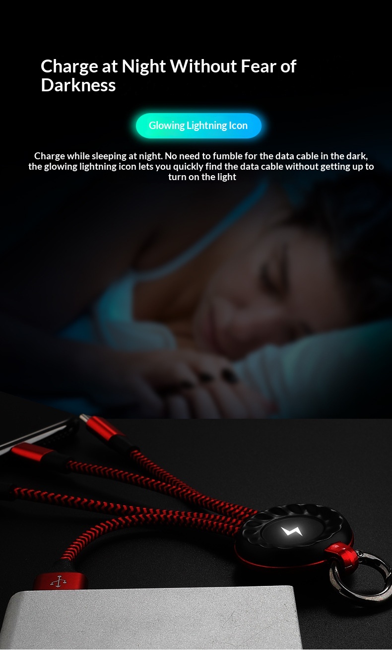 Glow Keychain Compatible With Android Type-C 3-in-1 Braided Fast Charging Cable