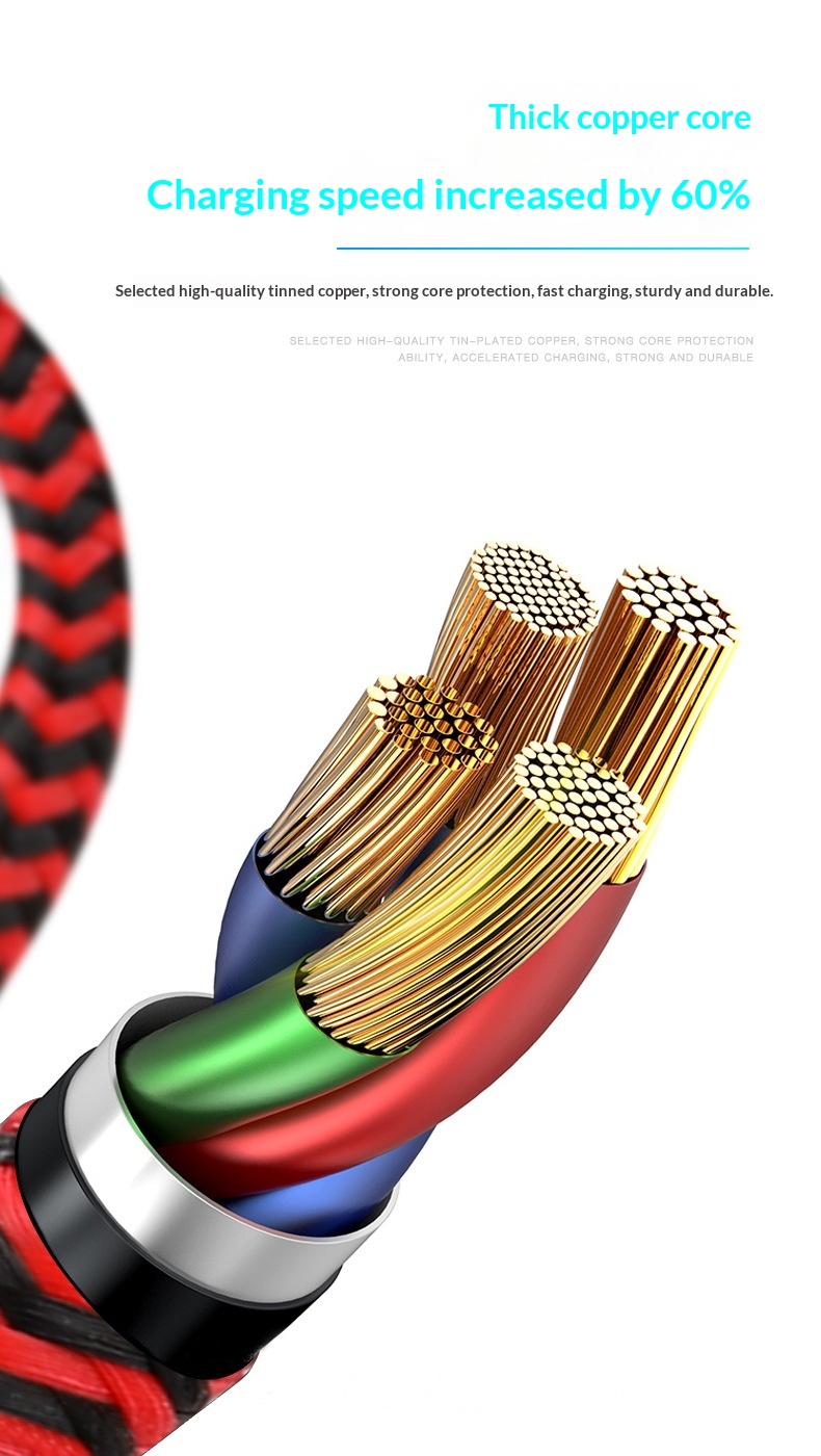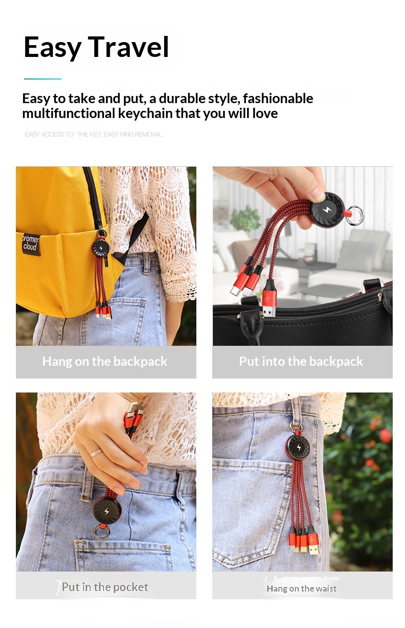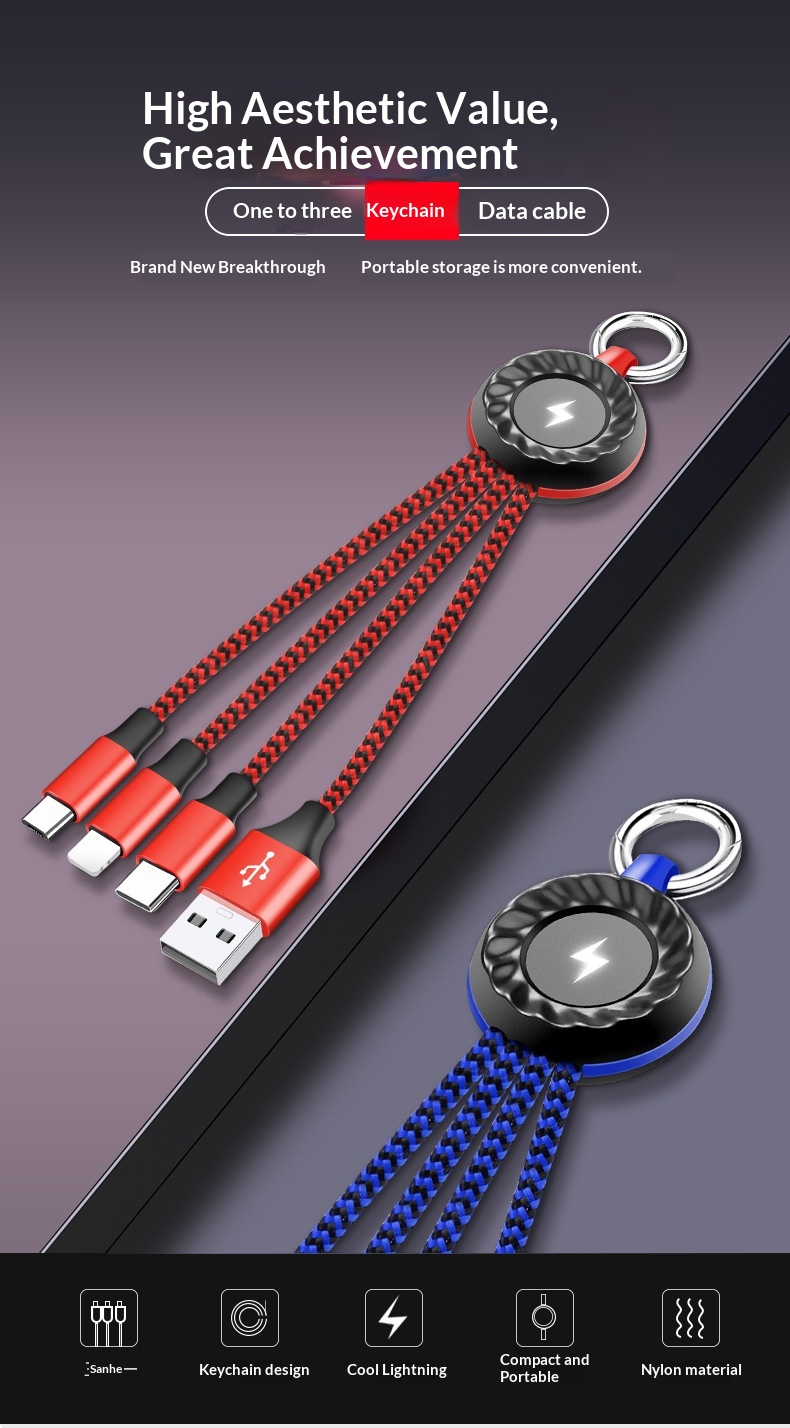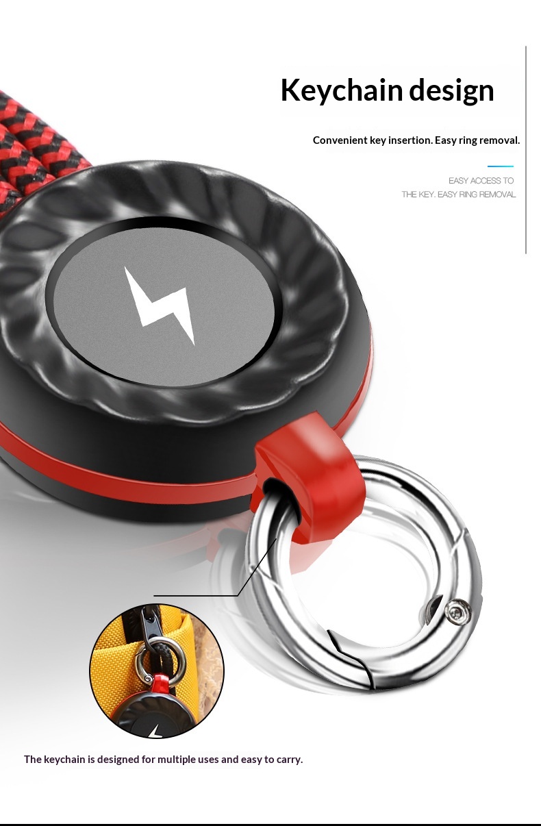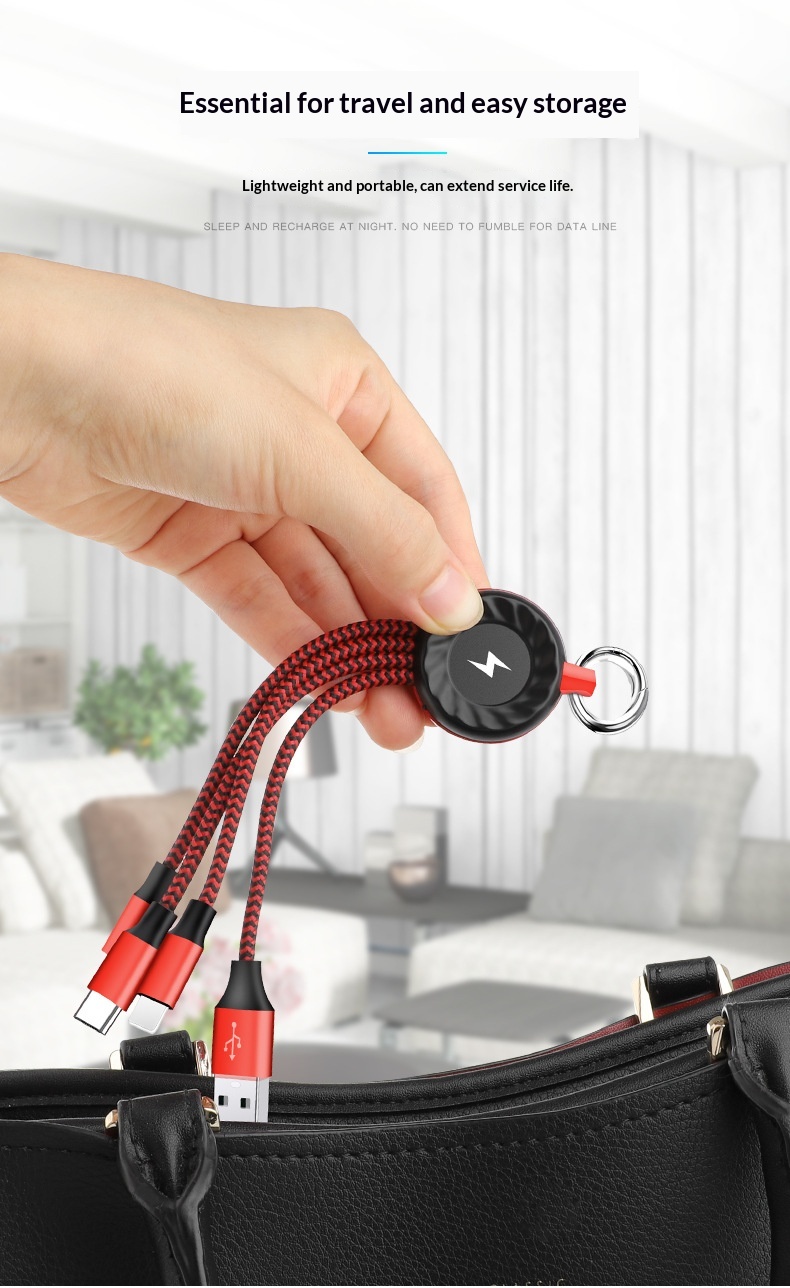 Glow Keychain Compatible With Android Type-C 3-in-1 Braided Fast Charging Cable