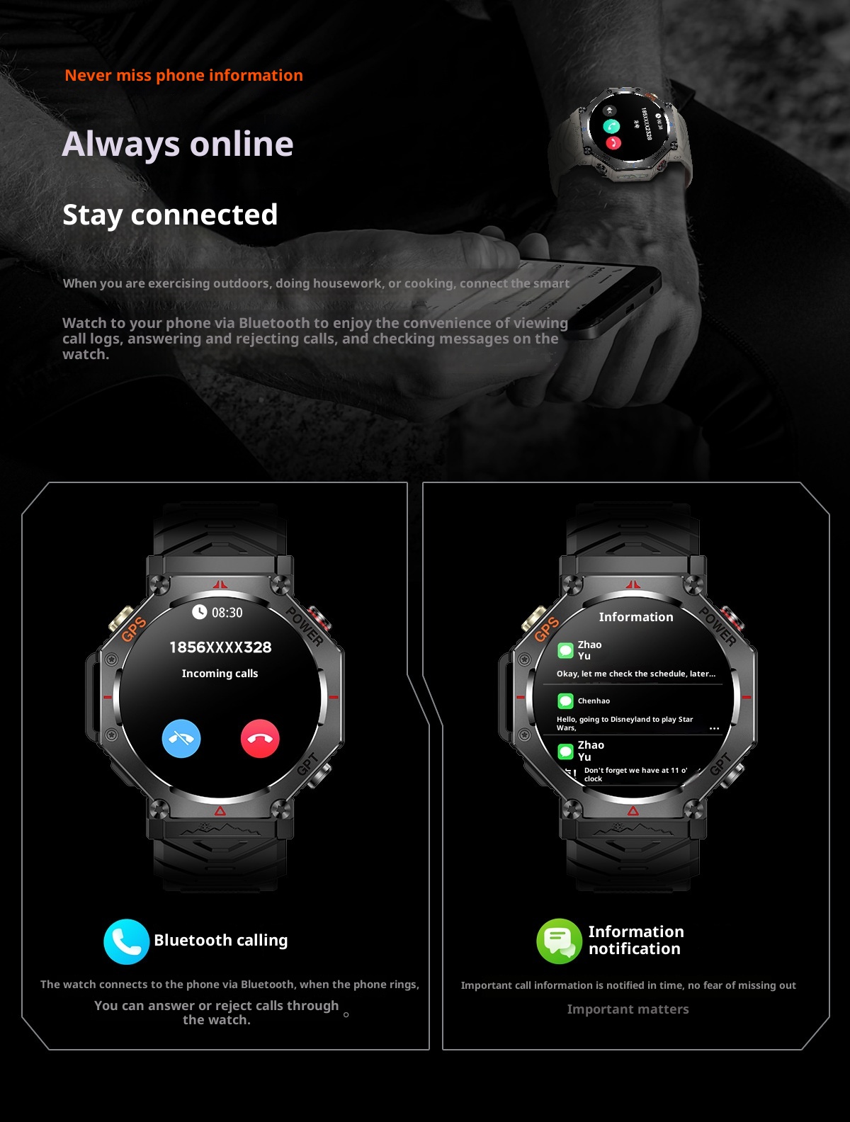 Men's Smart Watch Bluetooth Calling GPS Outdoor Sports Hand