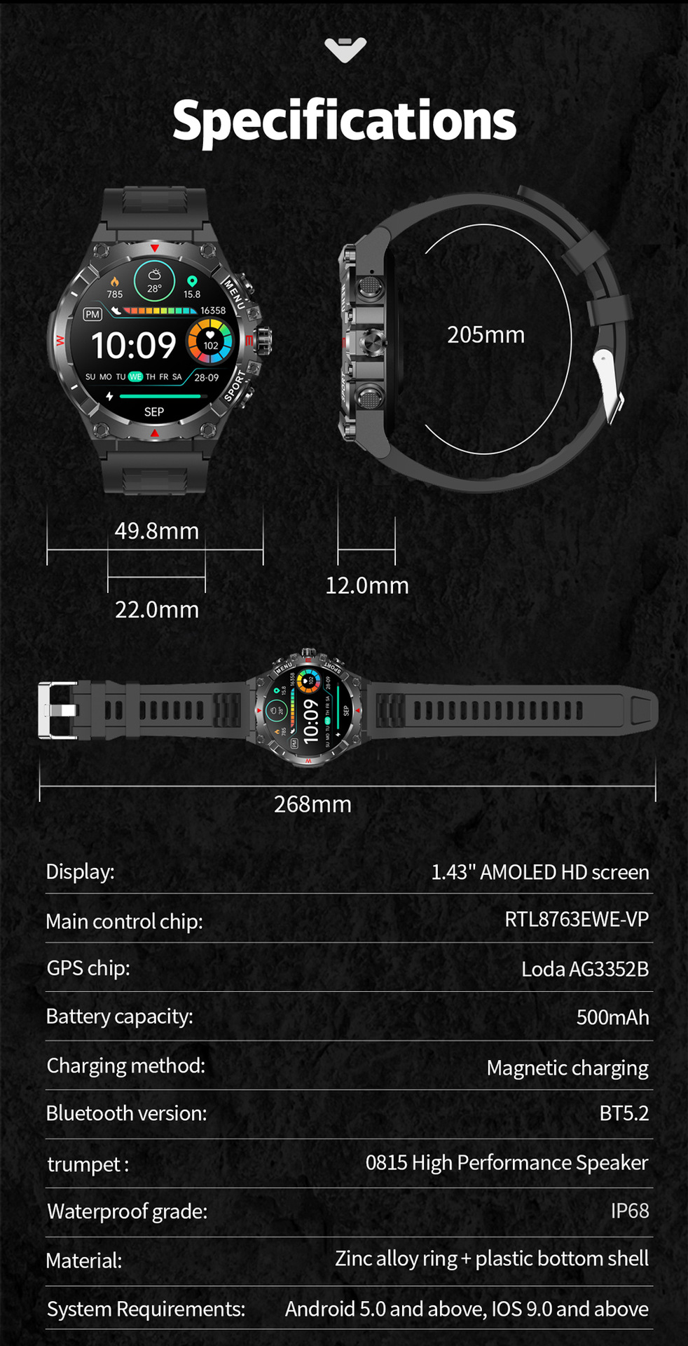 V76 GPS Watch Built-in GPS Compass Altimeter Air Pressure